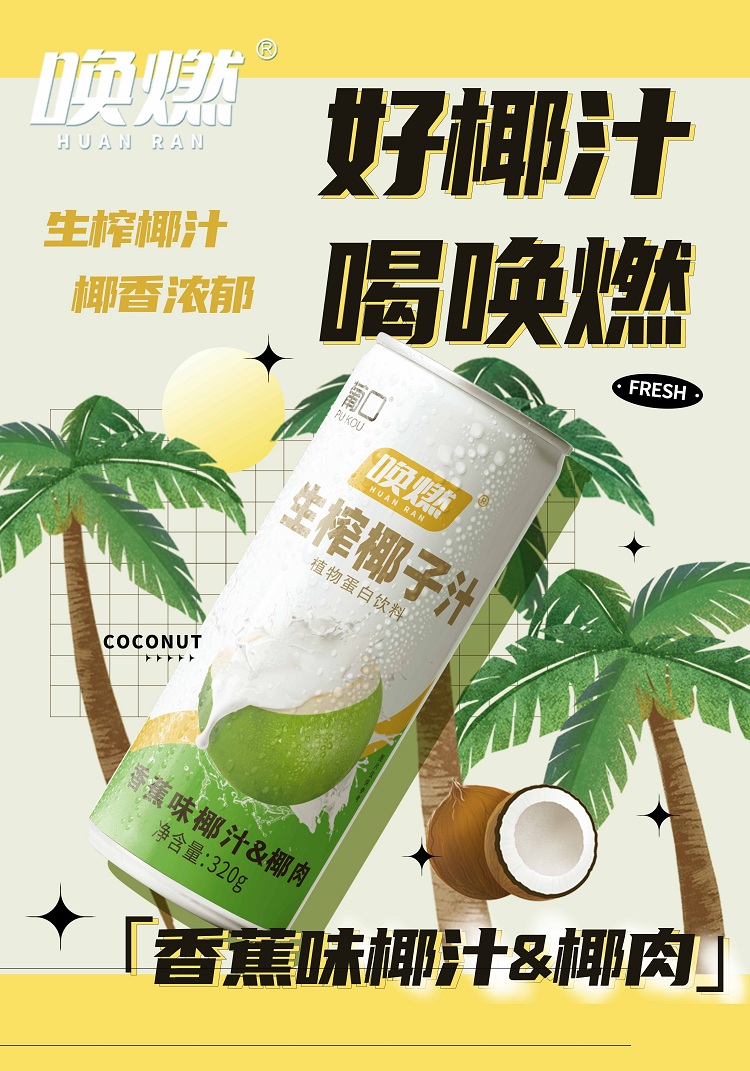 唤燃椰子汁,品质、口感与健康的完美结合,自带植物基、纯.天然、健康、等标签,以其纯正的口感和新鲜的味道,成为了市场上的宠儿,唤燃椰子汁有什么独特魅力呢?甄选越南进口老树椰,遵循严格的生产标准,确保每一滴椰子汁的纯净新鲜,口感丝滑,带有浓郁的椰香。粒粒真实椰肉,每一口都让人感受到清新的海洋气息,仿佛置身于热带海滩上。唤燃椰子汁富含植物蛋白,低糖、高蛋白、高纤维、高维生素、含有丰富氨基酸、不饱和脂肪酸,营养价值丰富,无论是早餐搭配、运动后补充能量还是休闲时光畅饮,都能满足对健康的渴望。为了满足不同消费者的口味需求,唤燃椰子汁推出原味、香蕉、草莓三种口味供您选择,新鲜椰子与跳动的椰肉结合,让椰子汁的口感更加丰富多变,适合餐饮、聚会、追剧、工作、健身、休闲畅饮等多种场景。