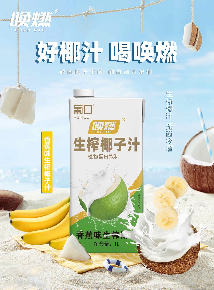唤燃椰子汁,品质、口感与健康的完美结合,自带植物基、纯.天然、健康、等标签,以其纯正的口感和新鲜的味道,成为了市场上的宠儿,唤燃椰子汁有什么独特魅力呢?甄选越南进口老树椰,遵循严格的生产标准,确保每一滴椰子汁的纯净新鲜,口感丝滑,带有浓郁的椰香。粒粒真实椰肉,每一口都让人感受到清新的海洋气息,仿佛置身于热带海滩上。唤燃椰子汁富含植物蛋白,低糖、高蛋白、高纤维、高维生素、含有丰富氨基酸、不饱和脂肪酸,营养价值丰富,无论是早餐搭配、运动后补充能量还是休闲时光畅饮,都能满足对健康的渴望。为了满足不同消费者的口味需求,唤燃椰子汁推出原味、香蕉、草莓三种口味供您选择,新鲜椰子与跳动的椰肉结合,让椰子汁的口感更加丰富多变,适合餐饮、聚会、追剧、工作、健身、休闲畅饮等多种场景。